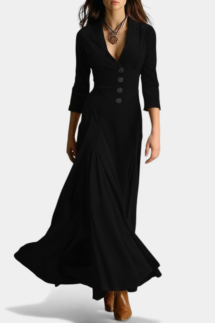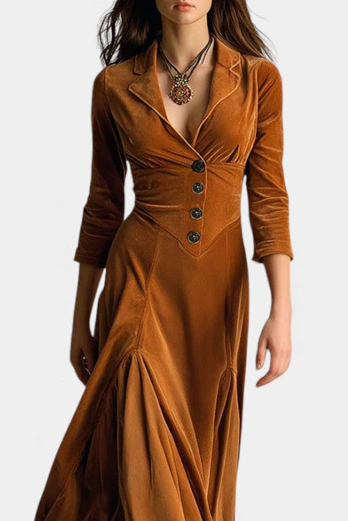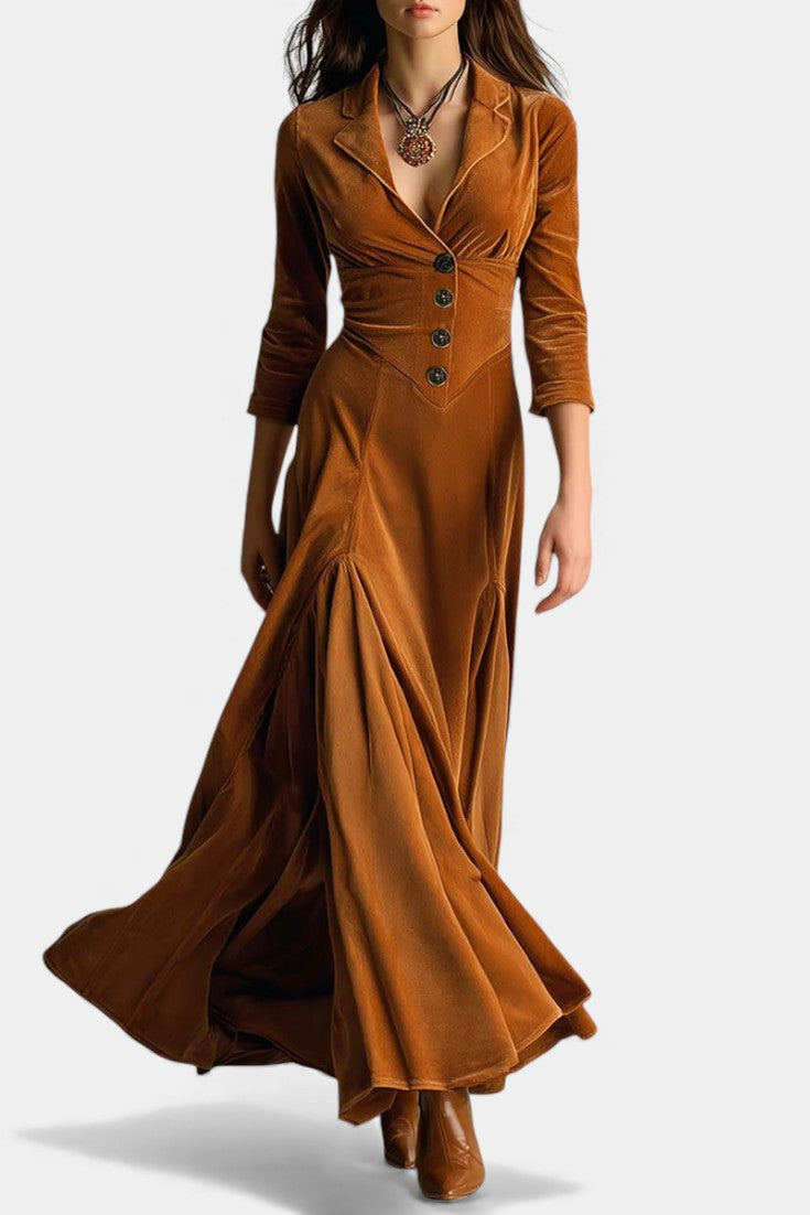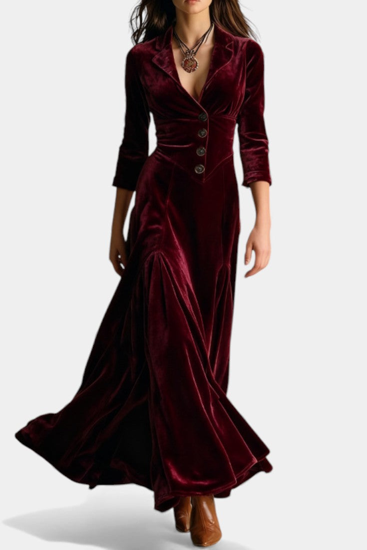 Camélia Robe Longue en Velours Style Blazer Rétro