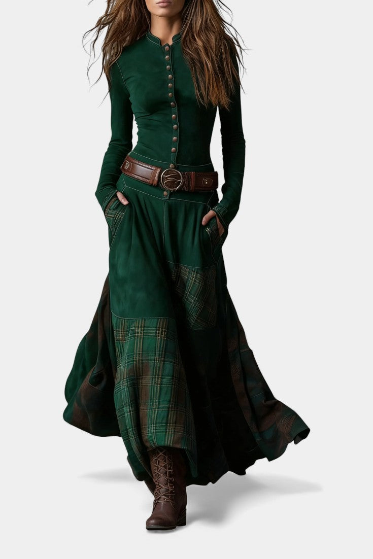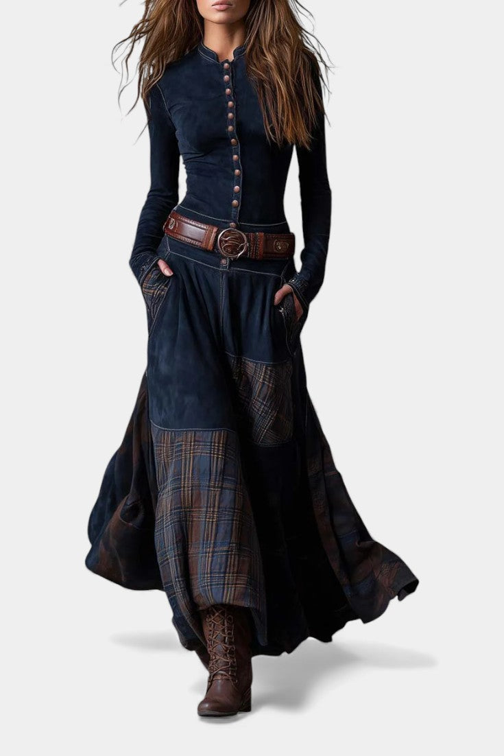 Marlis Robe Longue Élégante à Carreaux Vintage