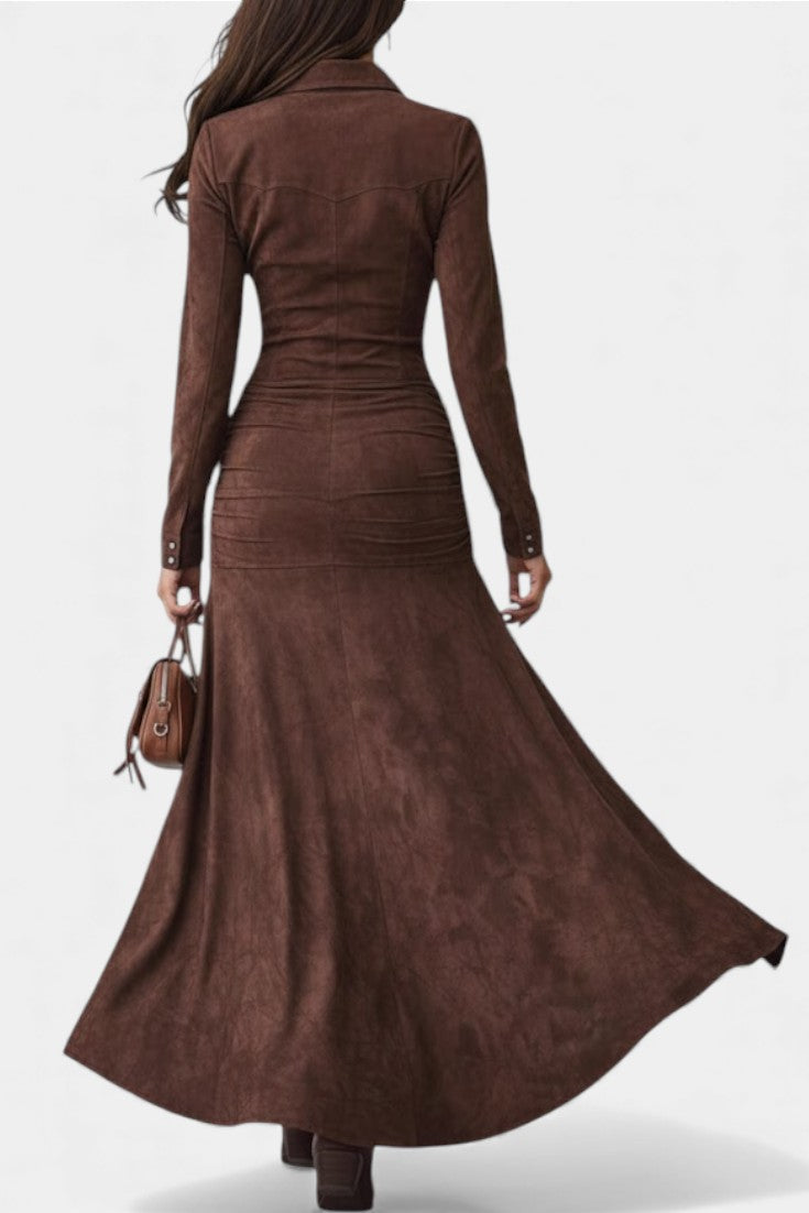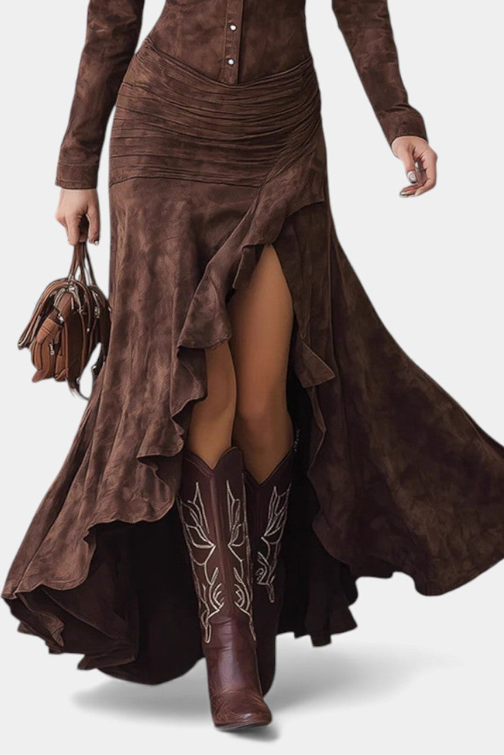 Tilda Robe Longue Marron Rétro à Volants Irréguliers