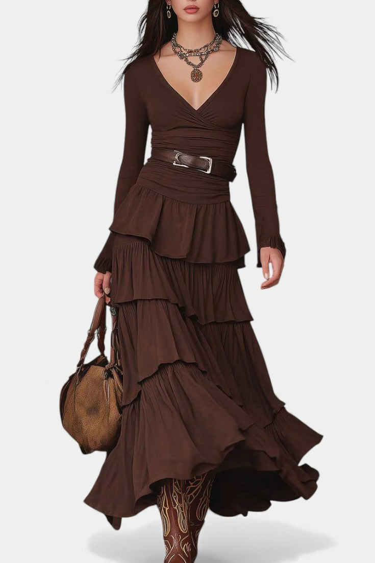 Une robe qui mêle charme d’antan et élégance contemporaine. Hinda séduit par sa silhouette fluide sublimée de volants superposés, créant un mouvement gracieux à chaque pas. Son col en V et sa coupe féminine apportent une présence raffinée, tandis que sa ceinture incluse structure délicatement la taille pour un rendu harmonieux et intemporel.