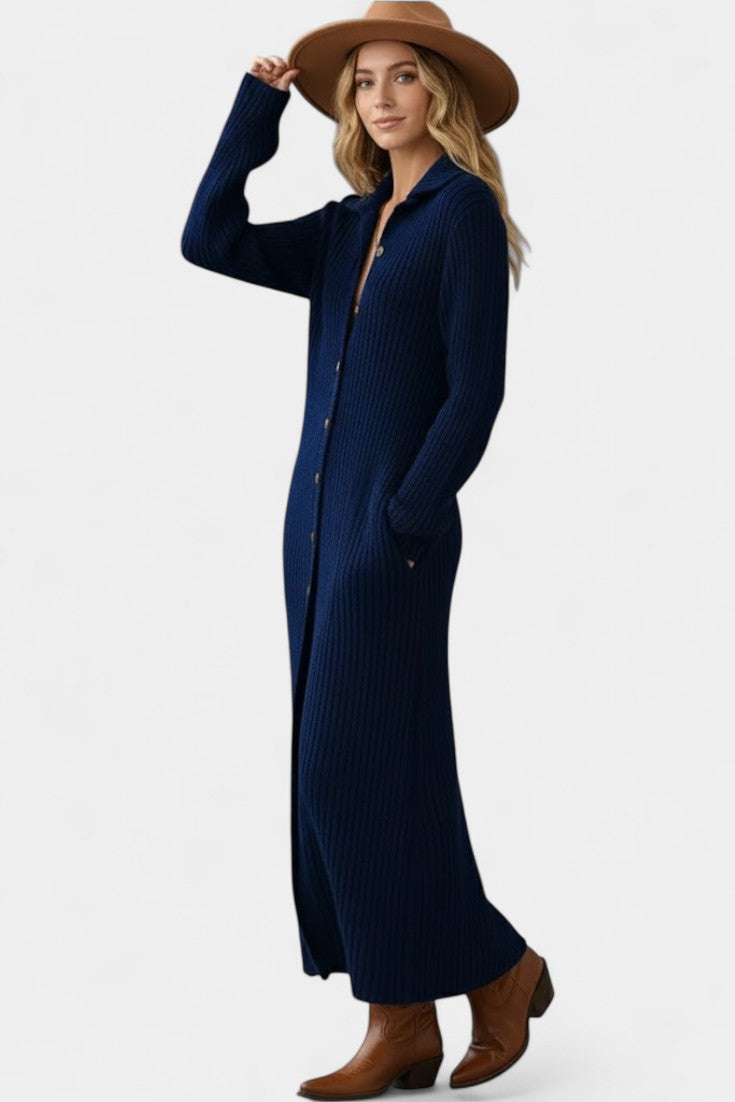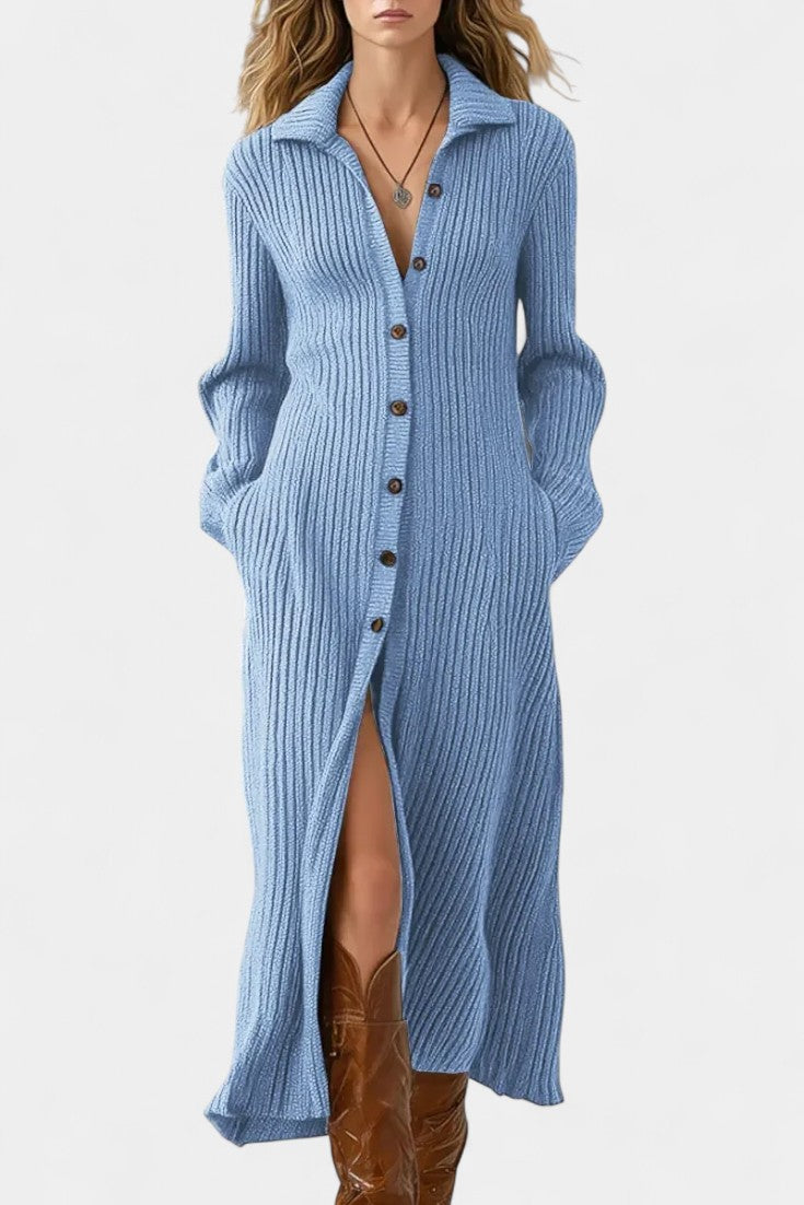 Thea Robe Longue en Maille à Col Chemise